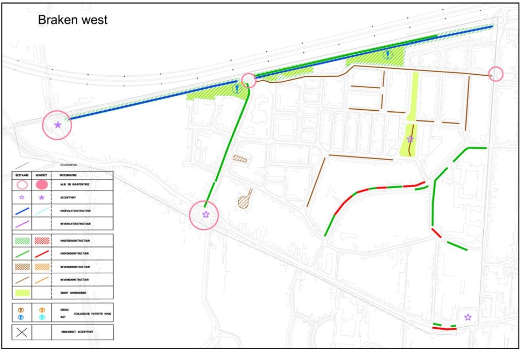 In hoofdstuk groenstructuur voor de wijk Braken-West staan een aantal opvallende zaken: