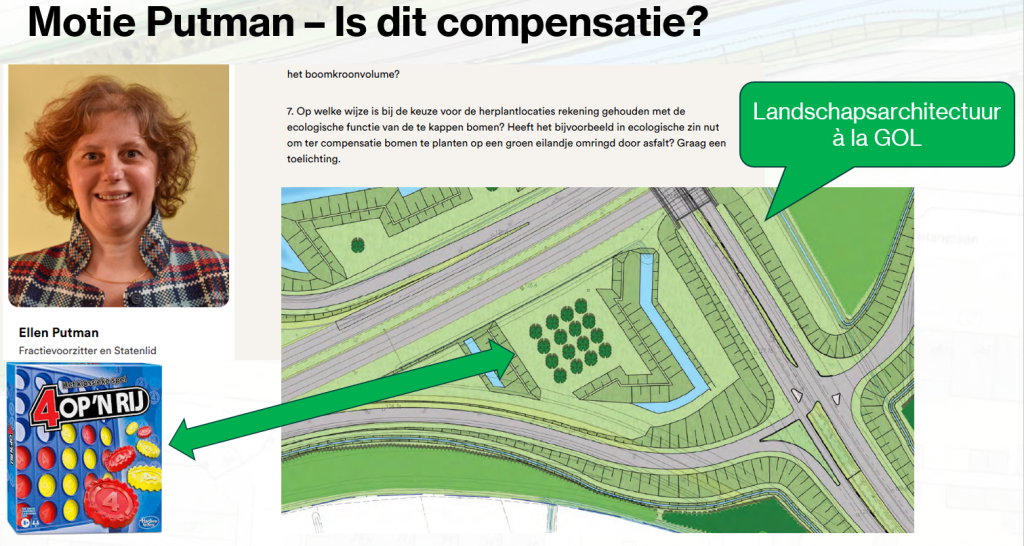 Heeft het in ecologische zin nut om ter compensatie bomen te planten op een groen eilandje omringd door asfalt?”