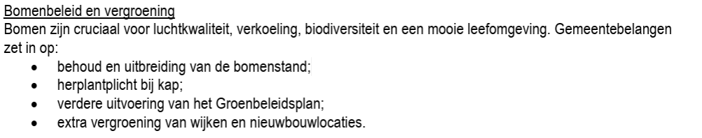 Nog geen reactie van gemeentebelangen, maar dit komt uit hun verkiezingsprogramma