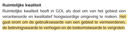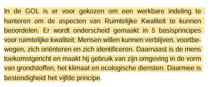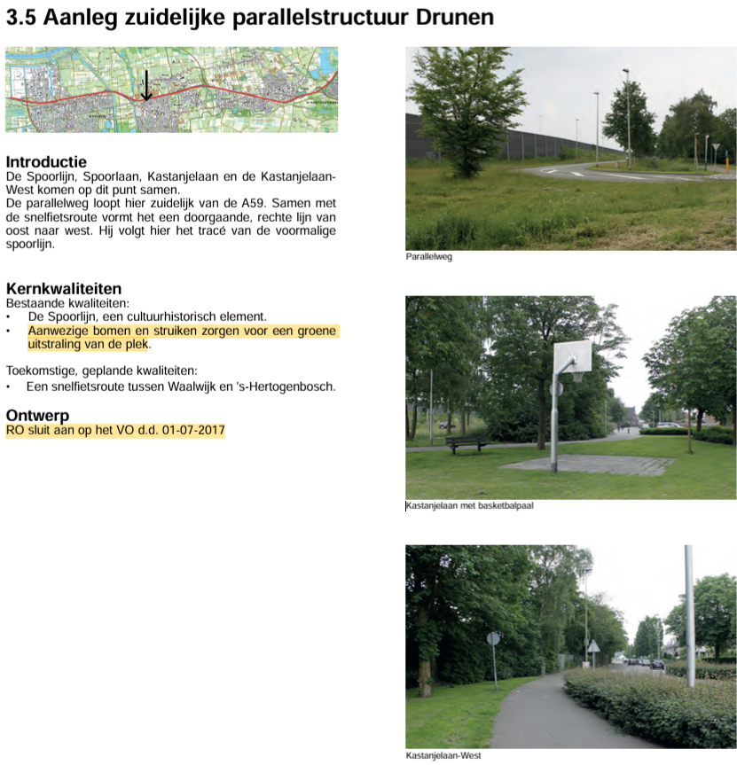 De introductie verwijst naar het ruimtelijke kwaliteitsplan en ruimtelijk ontwerp. Laten we even kijken op pagina 44 van het ruimtelijk ontwerp uit 2018. De aanwezige bomen en struiken (uit de hoofdgroenstructuur) wordt daar een kern kwaliteit genoemd.