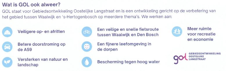 Op 29 december ontvingen bewoners een GOL nieuwsbrief met een hoog “wij van WC eend adviseren WC eend” gehalte. Groene GOL thema’s zijn “Versterken van natuur en landschap” en “een fijne leefomgeving in de dorpen”.